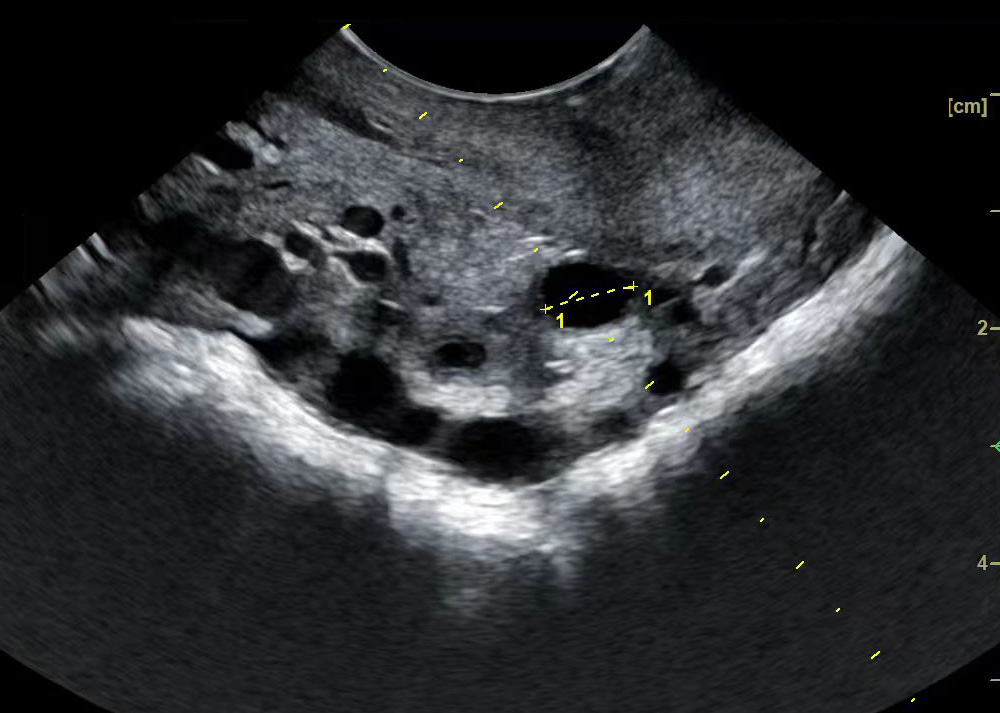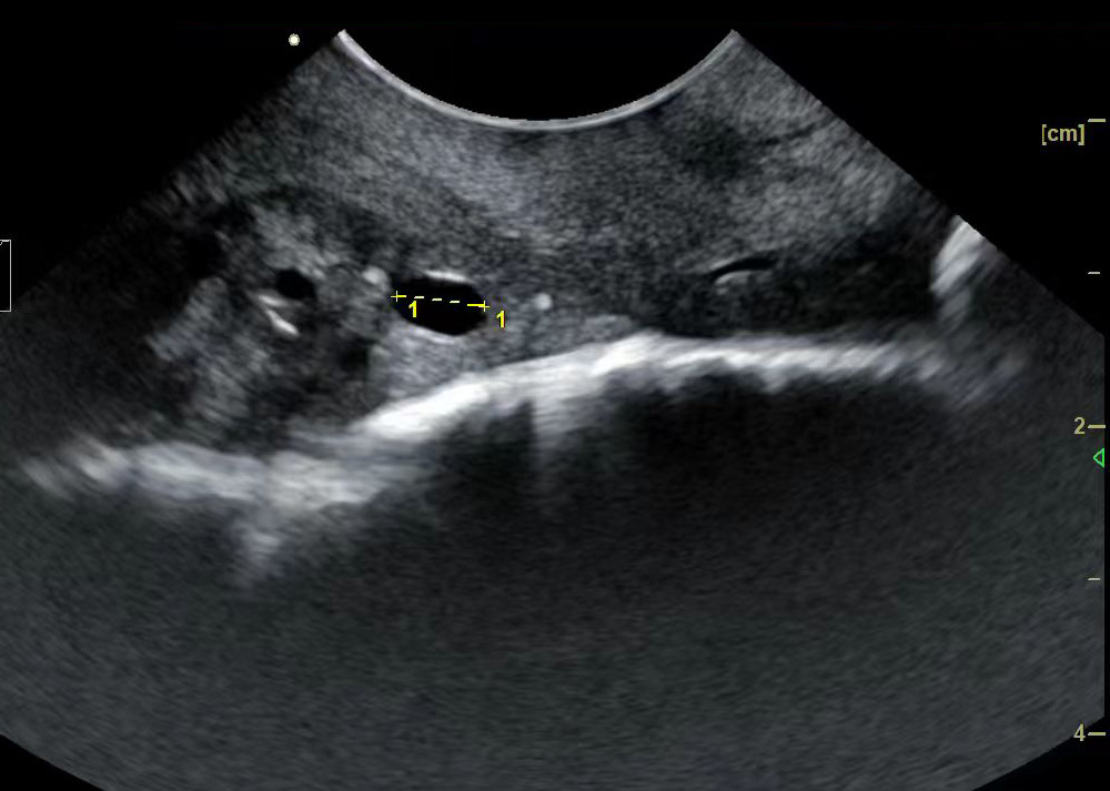 3.30 Puncture guidance, with puncture line, scale ruler on the puncture line, center line on the puncture line, and puncture image enhancement processing.