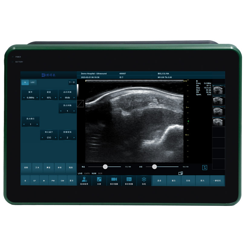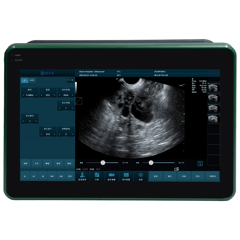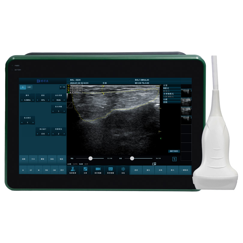 3.18 Image processing: multi-beam imaging; high line density scanning (adjustable); 8-segment segment gain TGC control; dynamic range: ≥120 dB; automatic gain control; M scanning speed adjustable; PW scanning speed adjustable; sound power adjustable; controllable frame correlation; Gamma correction; scanning range adjustable; up/down/left/right/black and white flip; image enhancement, edge enhancement; noise suppression; speckle suppression, dynamic focus