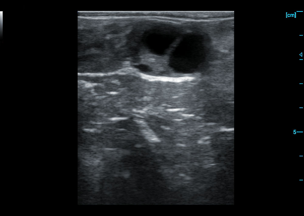 • Multiple anechoic follicular structures clearly visualized with defined margins.